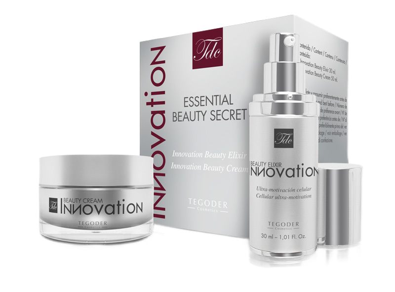 Innovation Beauty Elixir: свободные аминокислоты, морской коллаген, растительные стволовые клетки, тетрапептид, бисаболол, меристемальные клетки стручка ванили, витамин Е, масло шиповника, гликопротеин, лецитин, центелла азиатская.